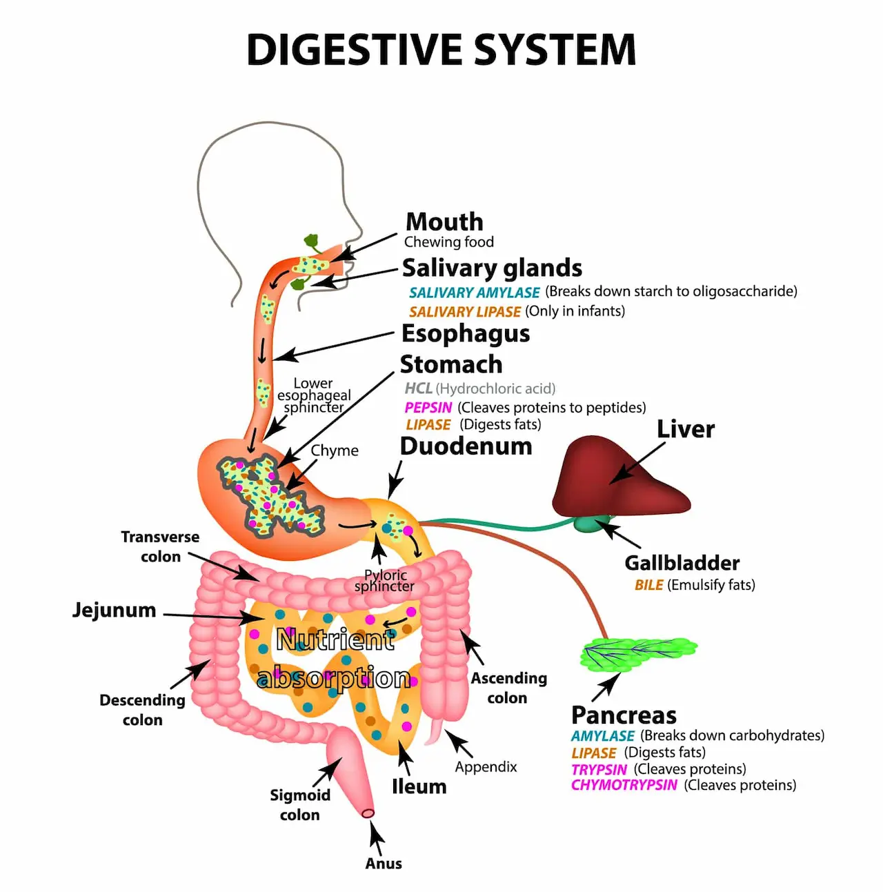 Digestion is a core function of the human body, of which digestive enzymes and other chemicals are an essential component in the metabolism and absorption of vitamins, minerals and other nutrients from our food that are required by our body to perform its important tasks and functions.