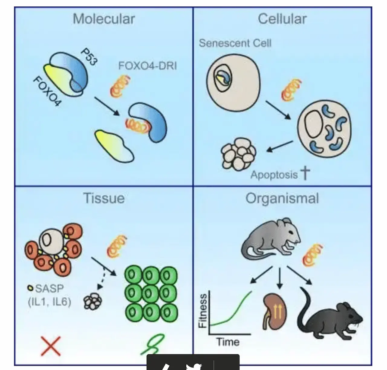 I know that is all pretty scientific, but really, the takeaway is that FOX04-DRI stops the accumulation and helps mop up senescent cells.
